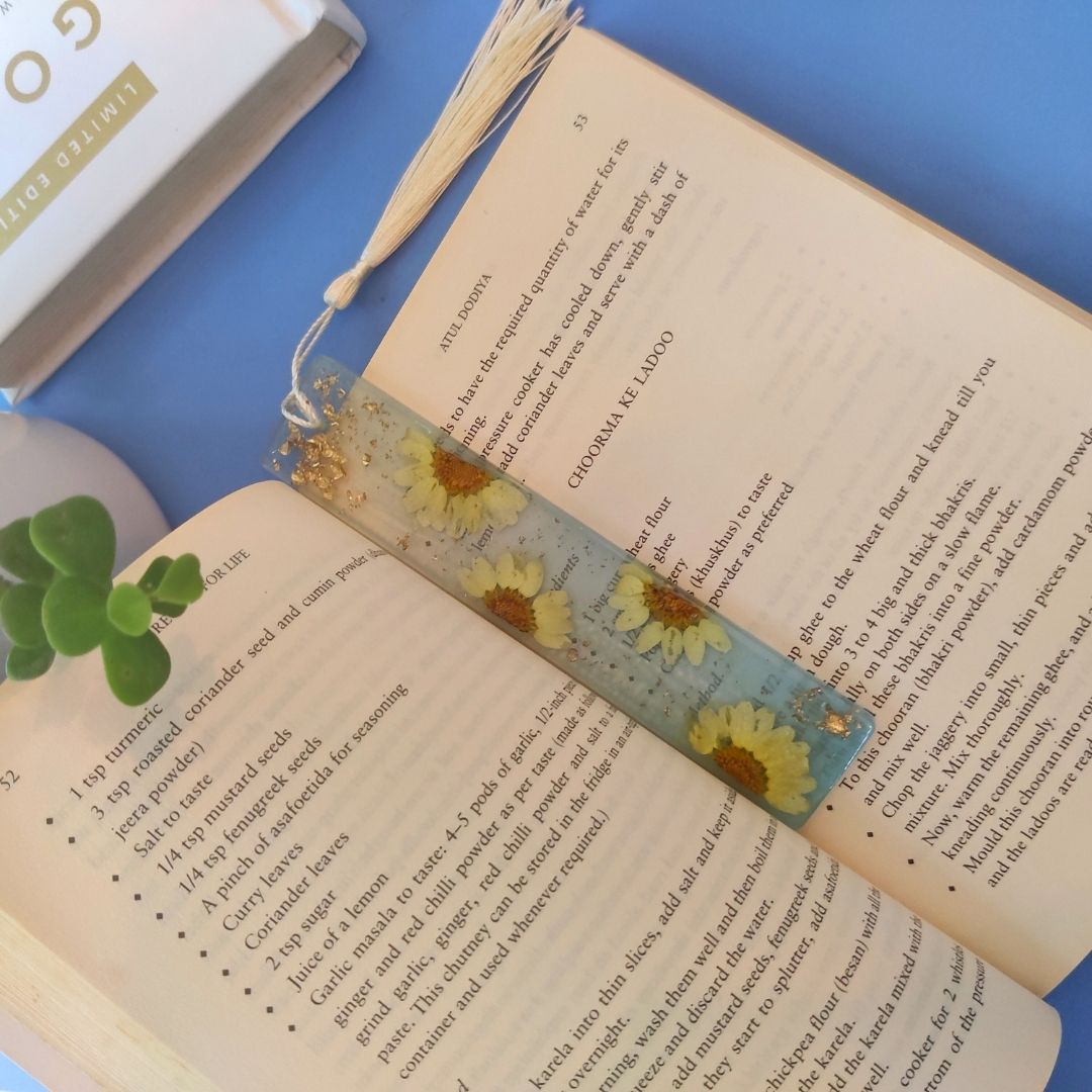 Elegant Design: This handmade resin bookmark features a rectangular shape adorned with shiny golden flakes, lending it a beautiful and glossy appearance.