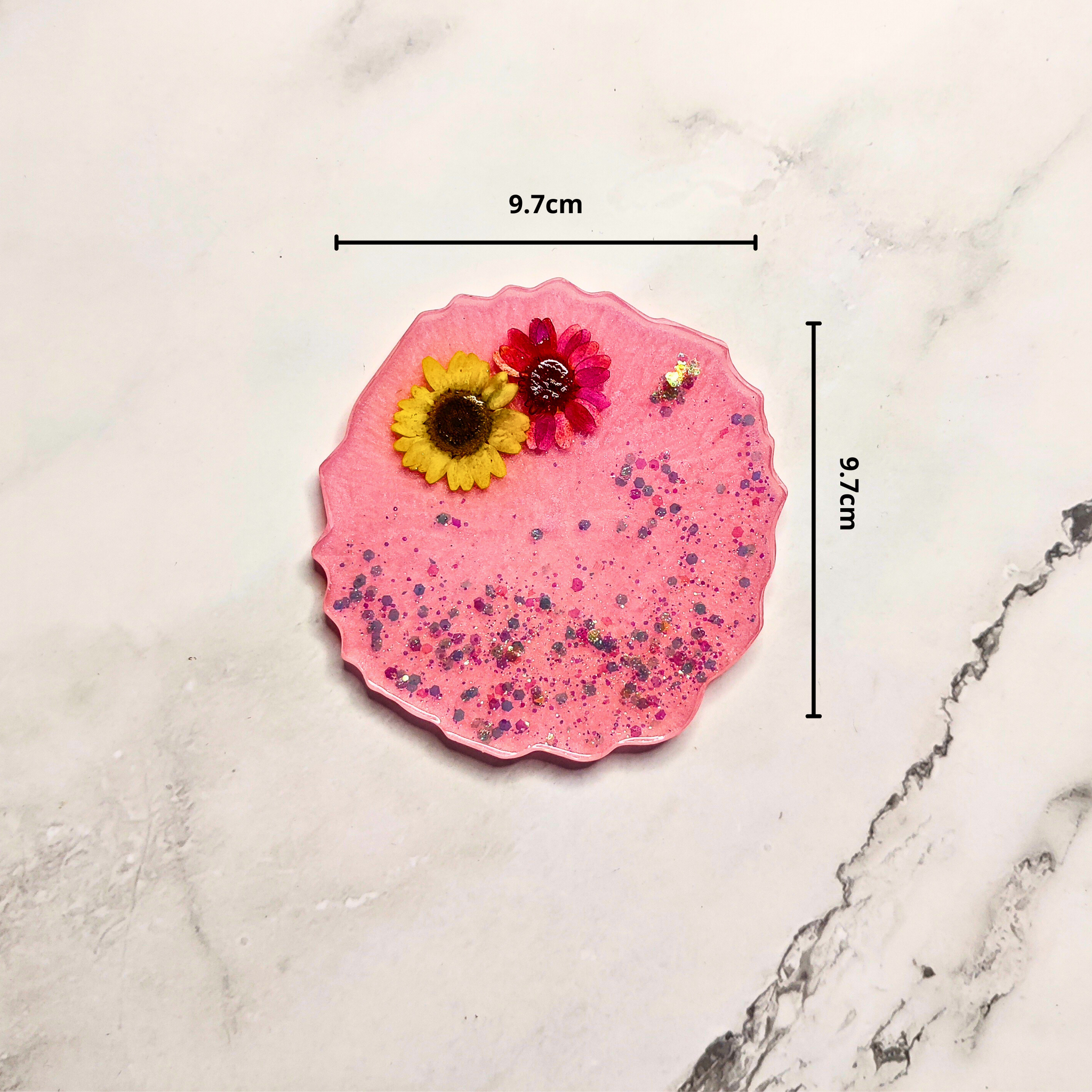 Real Dried Flower Resin Coaster with Gold Edge