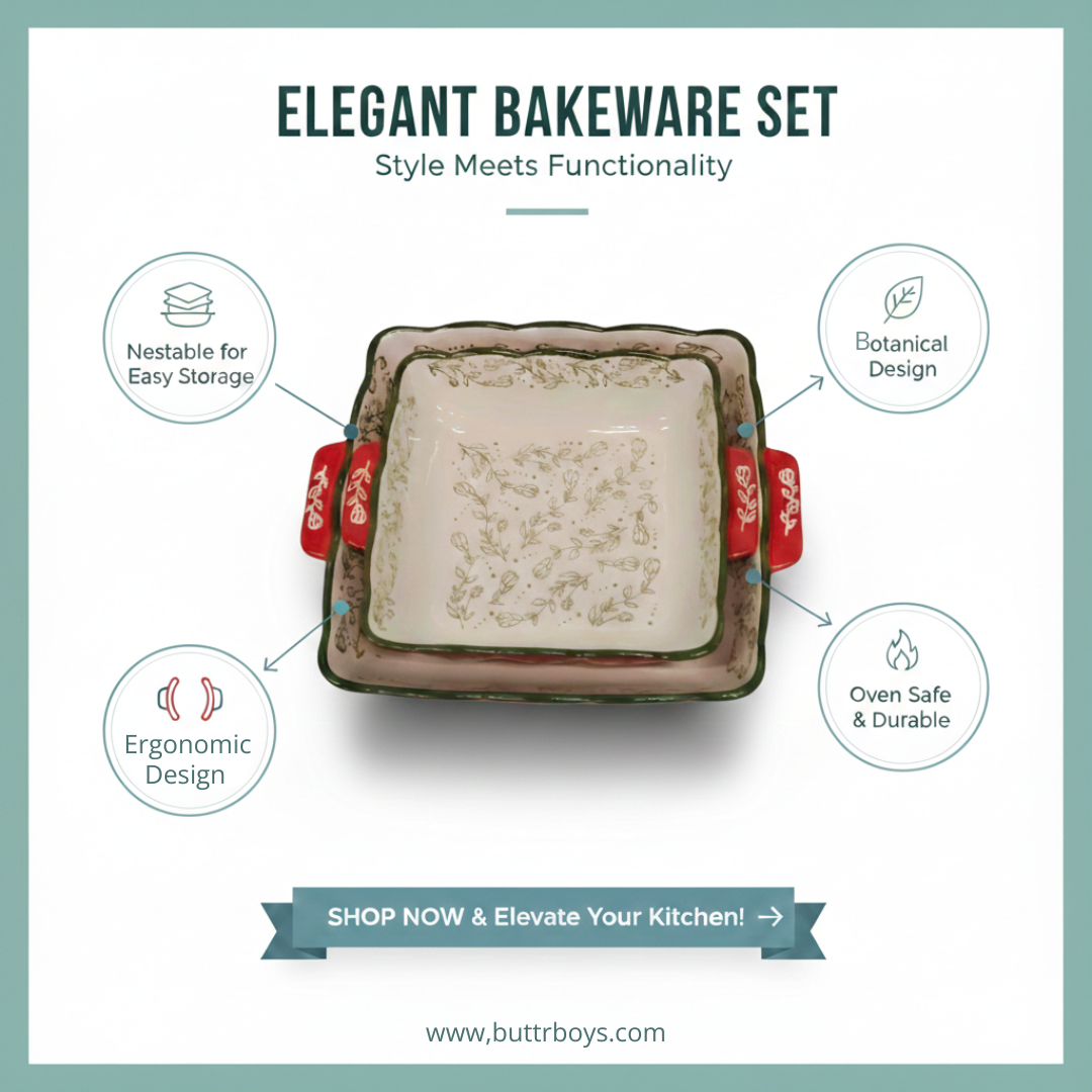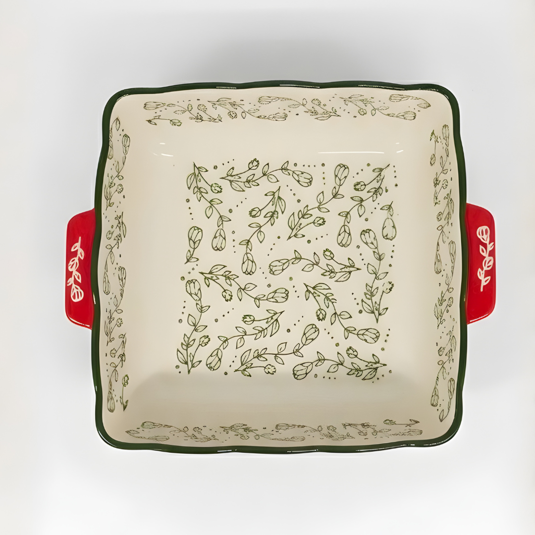 Bring elegance and functionality to your kitchen with this beautifully crafted ceramic square baking and serving dish. Featuring a soothing floral pattern and contrast side handles, this dish seamlessly transitions from oven to table. Its sturdy ceramic construction ensures consistent cooking results, while the spacious square shape makes it perfect for both daily meals and special occasions. A stylish essential for modern kitchens that appreciate timeless design.
