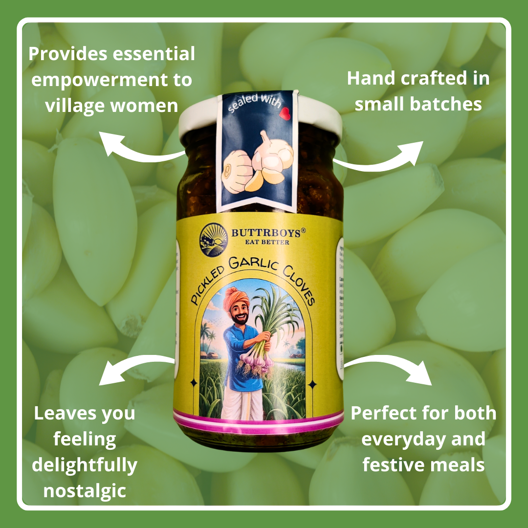 ·        A Flavourful Addition to Your Table: Toss these pickled garlic cloves into salads, pair them with cheeses, or use to create memorable sandwiches!