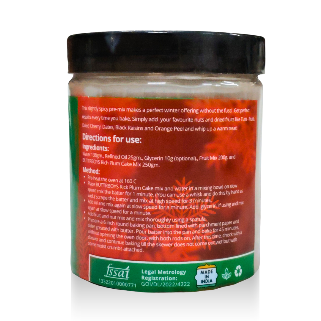 Buttrboys Rich Plum Cake Mix is designed to deliver a perfectly balanced plum cake with rich flavour, excellent rise, and a moist texture. Developed using professional baking expertise, this mix ensures consistent, bakery-quality results without complex preparation.