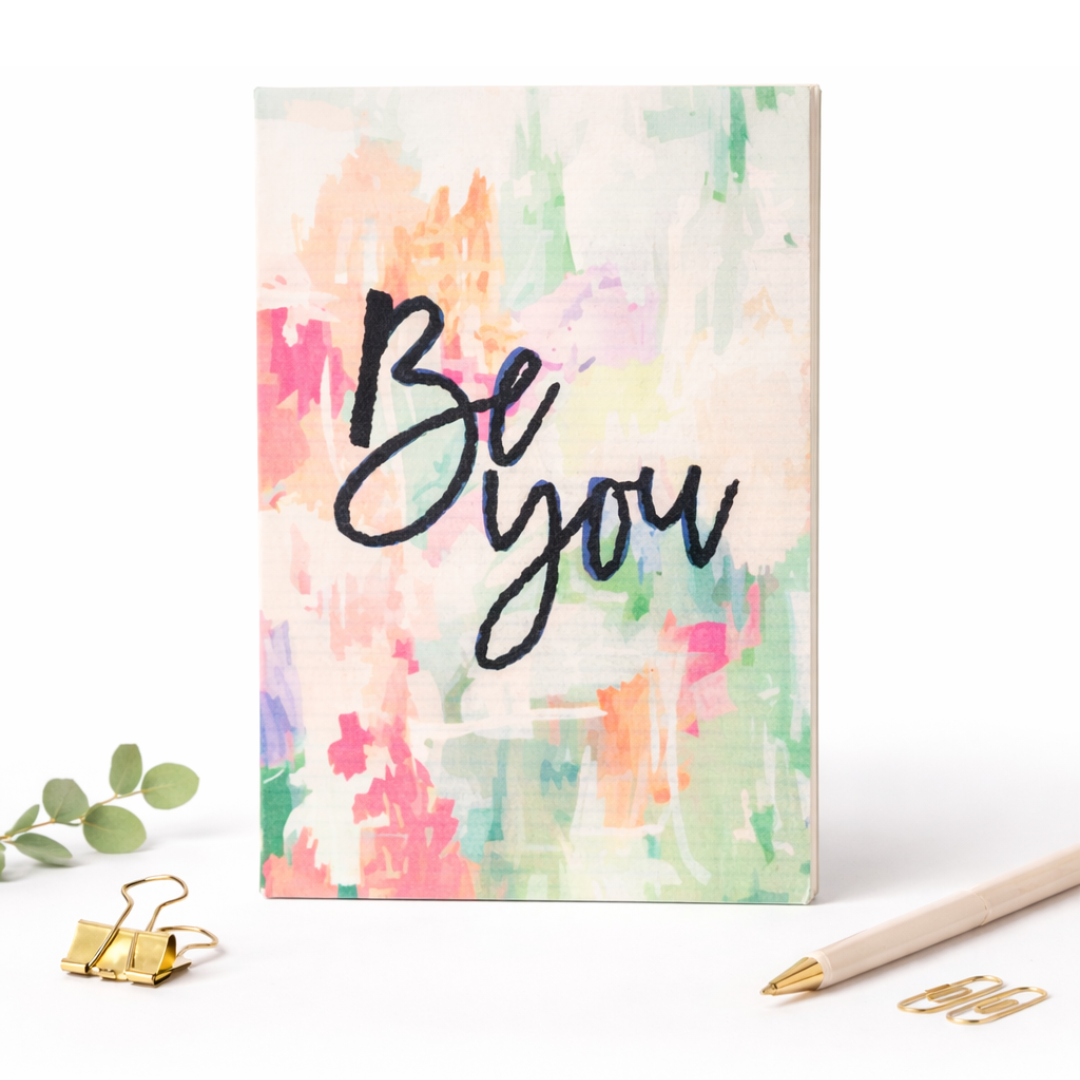 Embrace your individuality with our "Be You" Abstract Watercolor Notebook. Featuring a stunning, hand-painted aesthetic with fluid pastel brushstrokes in shades of blush pink, sky blue, and golden sand, this notebook is designed to be as unique as your thoughts. The elegant, minimalist "Be You" script serves as a daily reminder to stay authentic and inspired.